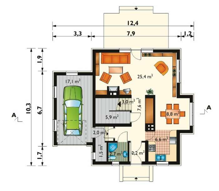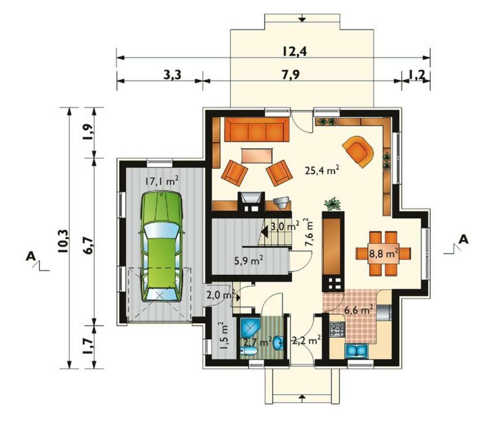 Жильцам — автолюбителям по душе придется гараж с мастерской для обслуживания машины. Отныне все механические работы можно выполнять в комфортных условиях. Дружеский характер домовладельцев подтверждается в планировке помещения. Вся свободная часть этажа отдана под пространство для встреч знакомых и родственников. На их усмотрение предлагается просторная гостиная, уютная столовая.