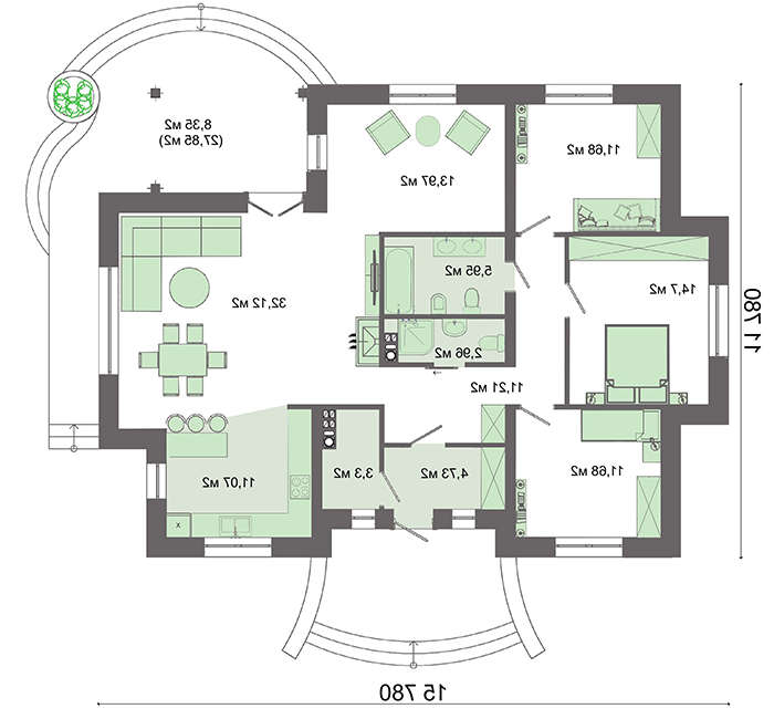 1 этажный дом с оригинальной многоскатной крышей 4M3309