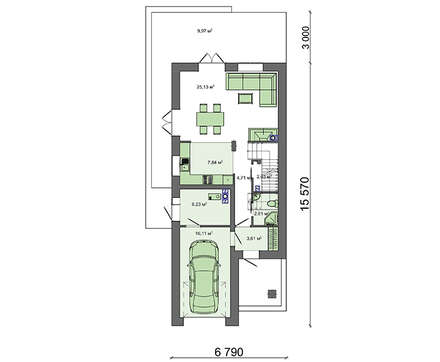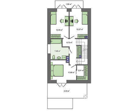 Проект содержит три раздела – Архитектурный, Конструктивный и Инженерный: водоснабжение, отопление, вентиляция, канализация, электроснабжение (приобретается за дополнительную плату) + Пояснительная записка.