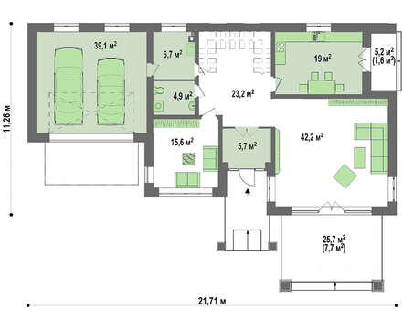 Проект содержит три раздела – АрхитектурныйКонструктивный и Инженерный: водоснабжение, отопление, вентиляция, канализация, электроснабжение (приобретается за дополнительную плату) + Пояснительная записка.