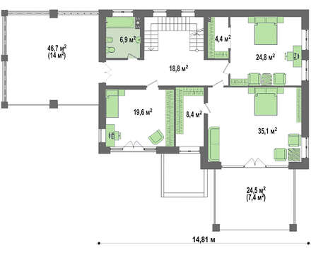 • 4M7091 Проект 2х этажного большого дома общей площадью 305 кв.м.