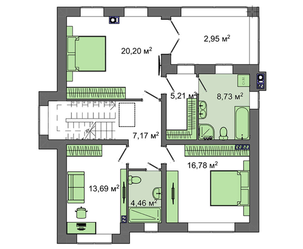 Все наши типовые проекты учитывают основные потребности среднестатистической семьи, правда, в таком случае говорить об индивидуальности вашего будущего жилища не приходится. Но, чтобы дом выглядел оригинально и полностью соответствовал вашим