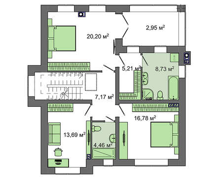 Проект содержит три раздела – Архитектурный, Конструктивный и Инженерный: водоснабжение, отопление, вентиляция, канализация, электроснабжение (приобретается за дополнительную плату) + Пояснительная записка.
