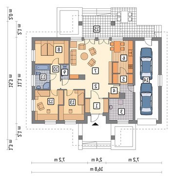 Проект содержит три раздела – Архитектурный, Конструктивный и Инженерный: водоснабжение, отопление, вентиляция, канализация, электроснабжение (приобретается за дополнительную плату) + Пояснительная записка.