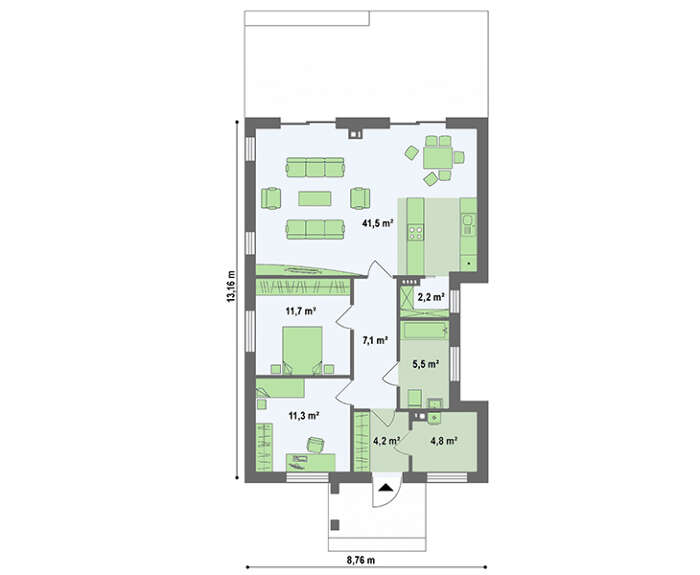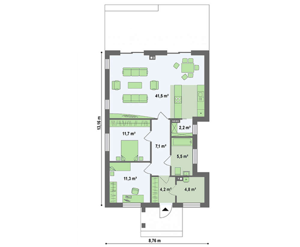 Проект содержит три раздела – Архитектурный, Конструктивный и Инженерный: водоснабжение, отопление, вентиляция, канализация, электроснабжение (приобретается за дополнительную плату) + Пояснительная записка.