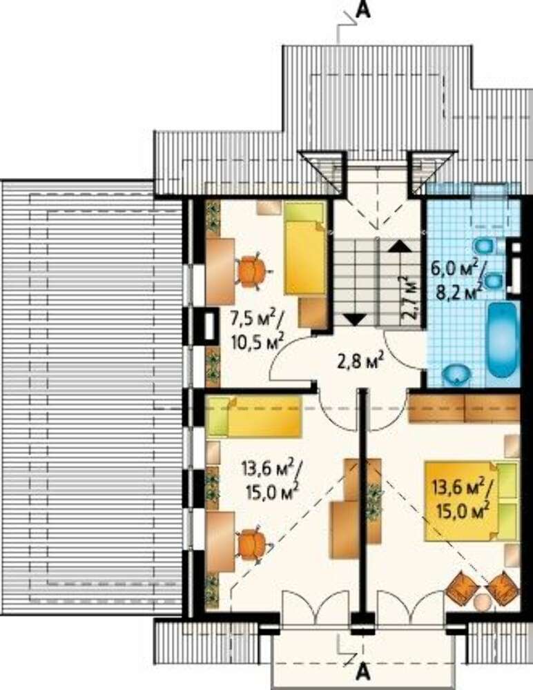 Угол наклона кровли:38°, 28 °