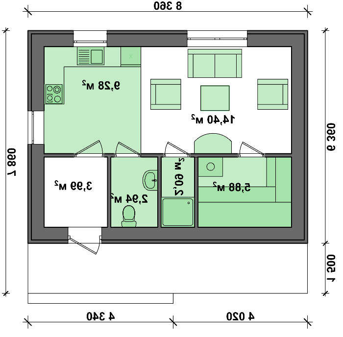 Проект содержит три раздела – Архитектурный, Конструктивный и Инженерный: водоснабжение, отопление, вентиляция, канализация, электроснабжение (приобретается за дополнительную плату) + Пояснительная записка.