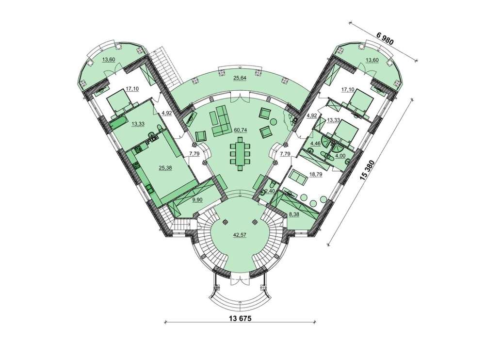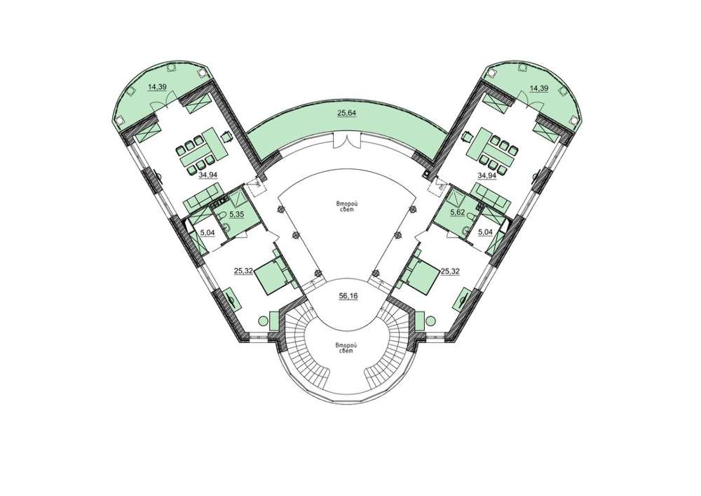 Проект содержит три раздела – Архитектурный, Конструктивный и Инженерный: водоснабжение, отопление, вентиляция, канализация, электроснабжение (приобретается за дополнительную плату) + Пояснительная записка.