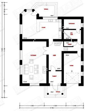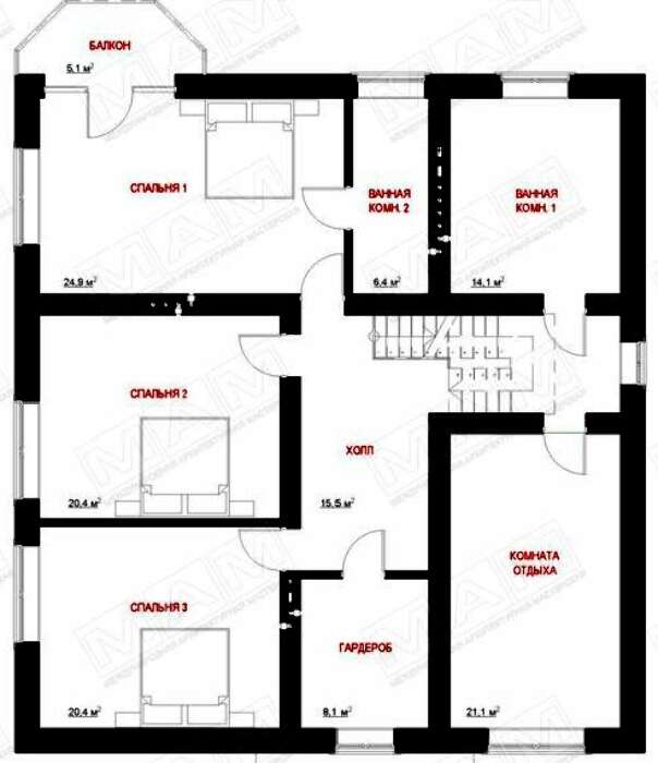 • 4M819 Большой загородный коттедж с тремя спальнями на втором этаже