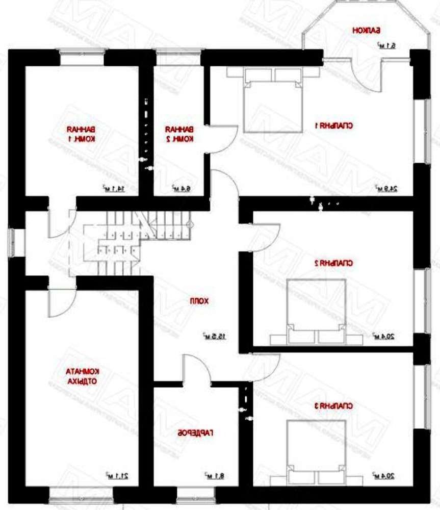 • 4M819 Большой загородный коттедж с тремя спальнями на втором этаже