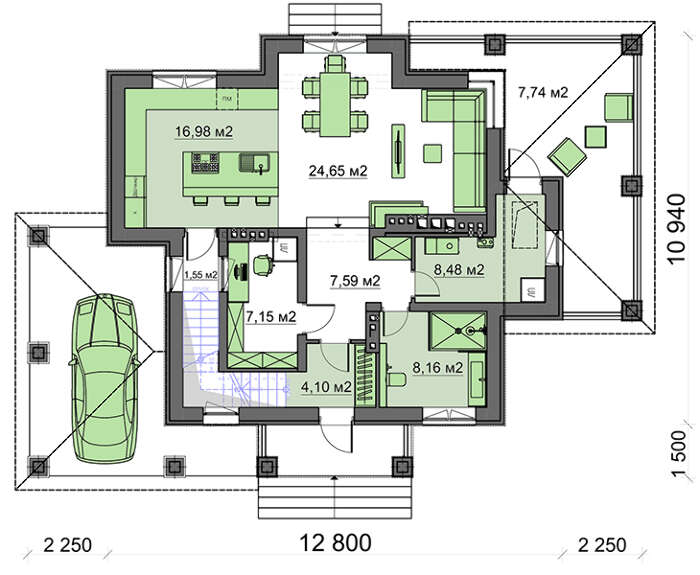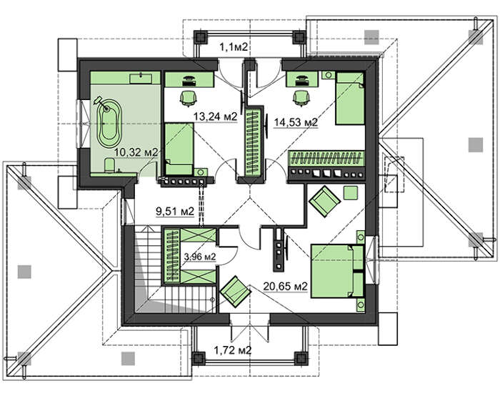 Проект содержит три раздела – АрхитектурныйКонструктивный и Инженерный: водоснабжение, отопление, вентиляция, канализация, электроснабжение (приобретается за дополнительную плату) + Пояснительная записка.