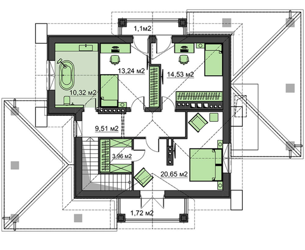 • 4M1517 Проект 2х этажного дома с цокольным этажом площадью 242 кв.м.