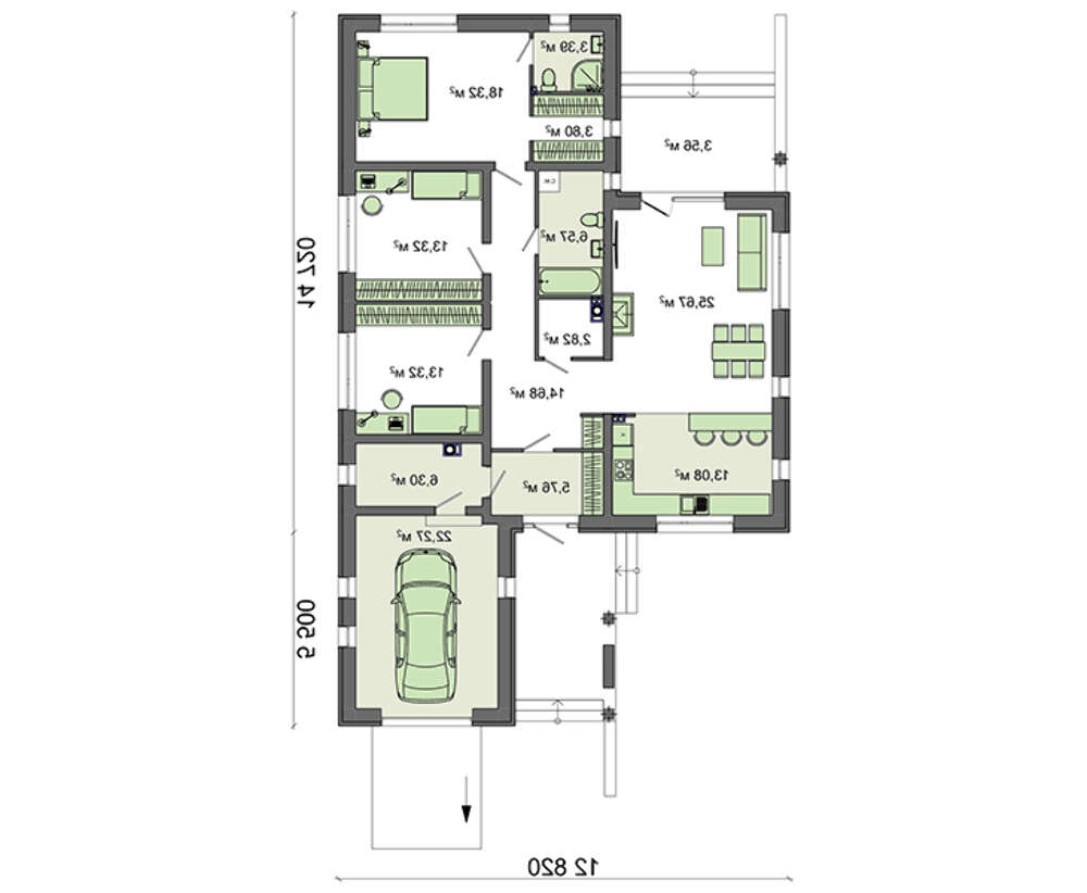 Проект содержит три раздела – Архитектурный, Конструктивный и Инженерный: водоснабжение, отопление, вентиляция, канализация, электроснабжение (приобретается за дополнительную плату) + Пояснительная записка.