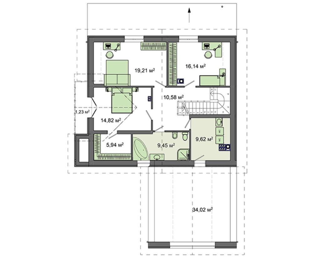 Проект содержит три раздела – АрхитектурныйКонструктивный и Инженерный: водоснабжение, отопление, вентиляция, канализация, электроснабжение (приобретается за дополнительную плату) + Пояснительная записка.