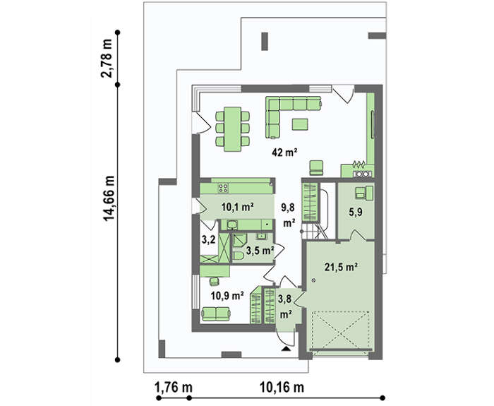 Проект содержит три раздела – Архитектурный, Конструктивный и Инженерный: водоснабжение, отопление, вентиляция, канализация, электроснабжение (приобретается за дополнительную плату) + Пояснительная записка.