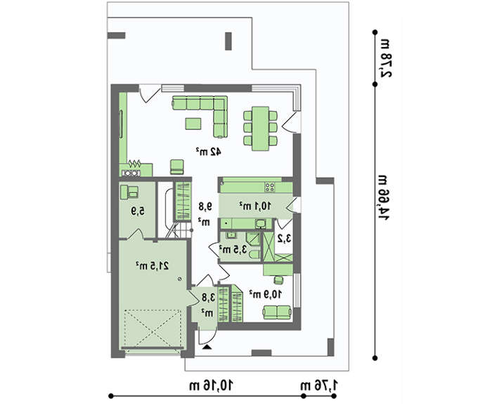 Чертеж современного коттеджа на 177 кв. м со встроенным гаражом 4M7113