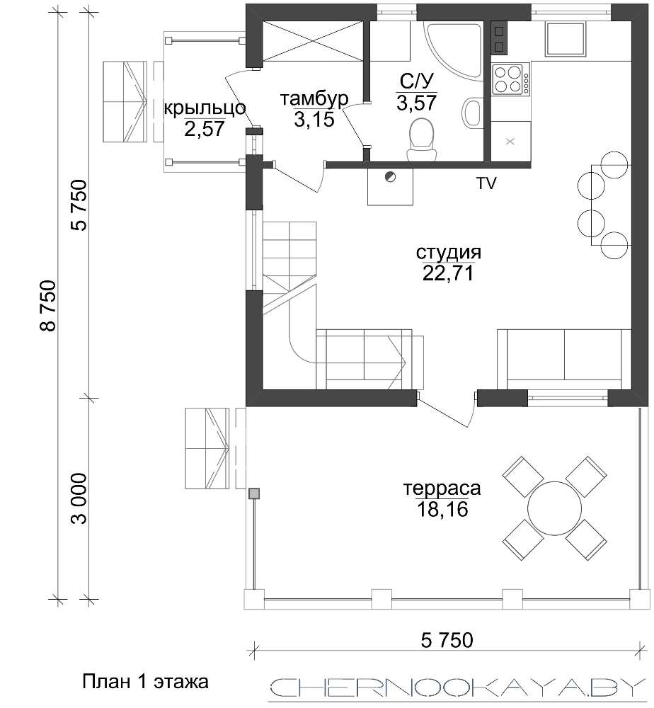 Проект содержит три раздела – Архитектурный, Конструктивный и Инженерный: водоснабжение, отопление, вентиляция, канализация, электроснабжение (приобретается за дополнительную плату) + Пояснительная записка.