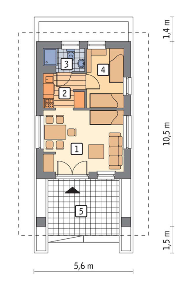 Проект содержит три раздела – Архитектурный, Конструктивный и Инженерный: водоснабжение, отопление, вентиляция, канализация, электроснабжение (приобретается за дополнительную плату) + Пояснительная записка.