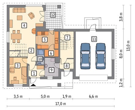 Проект содержит три раздела – Архитектурный, Конструктивный и Инженерный: водоснабжение, отопление, вентиляция, канализация, электроснабжение (приобретается за дополнительную плату) + Пояснительная записка.