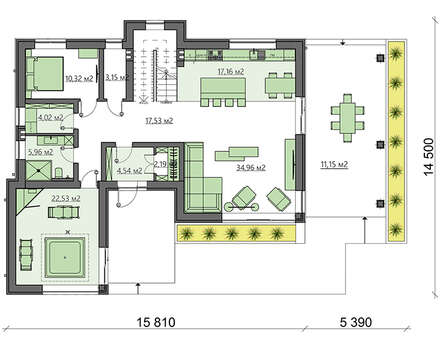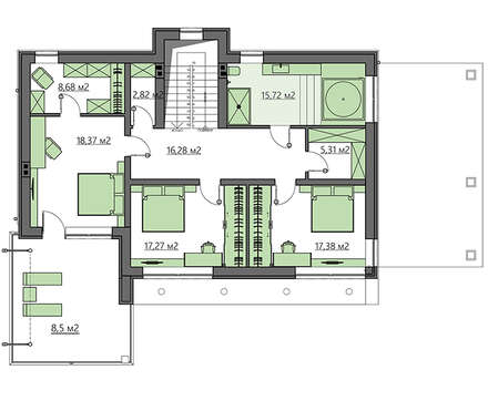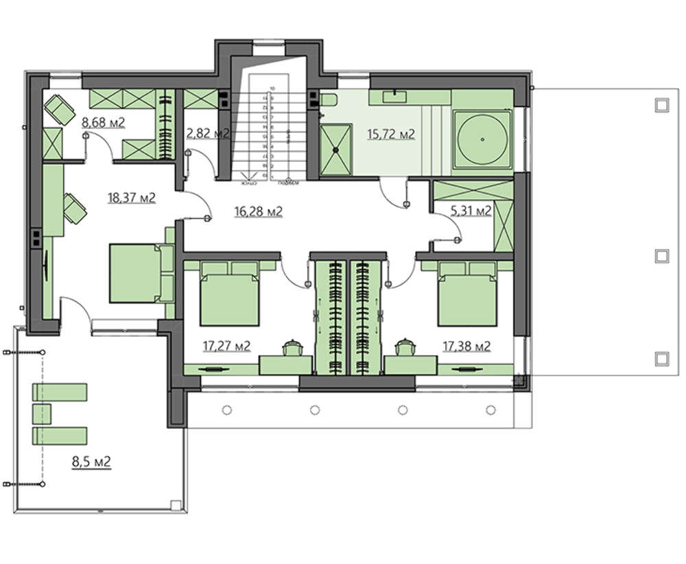 Двухэтажный дом с просторным балконом и навесом для автомобиля 4M1487