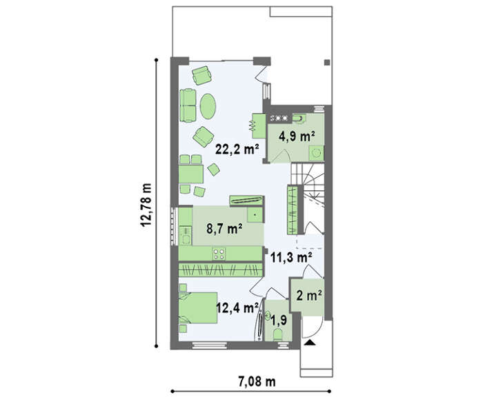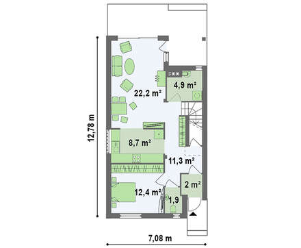 Проект содержит три раздела – Архитектурный, Конструктивный и Инженерный: водоснабжение, отопление, вентиляция, канализация, электроснабжение (приобретается за дополнительную плату) + Пояснительная записка.