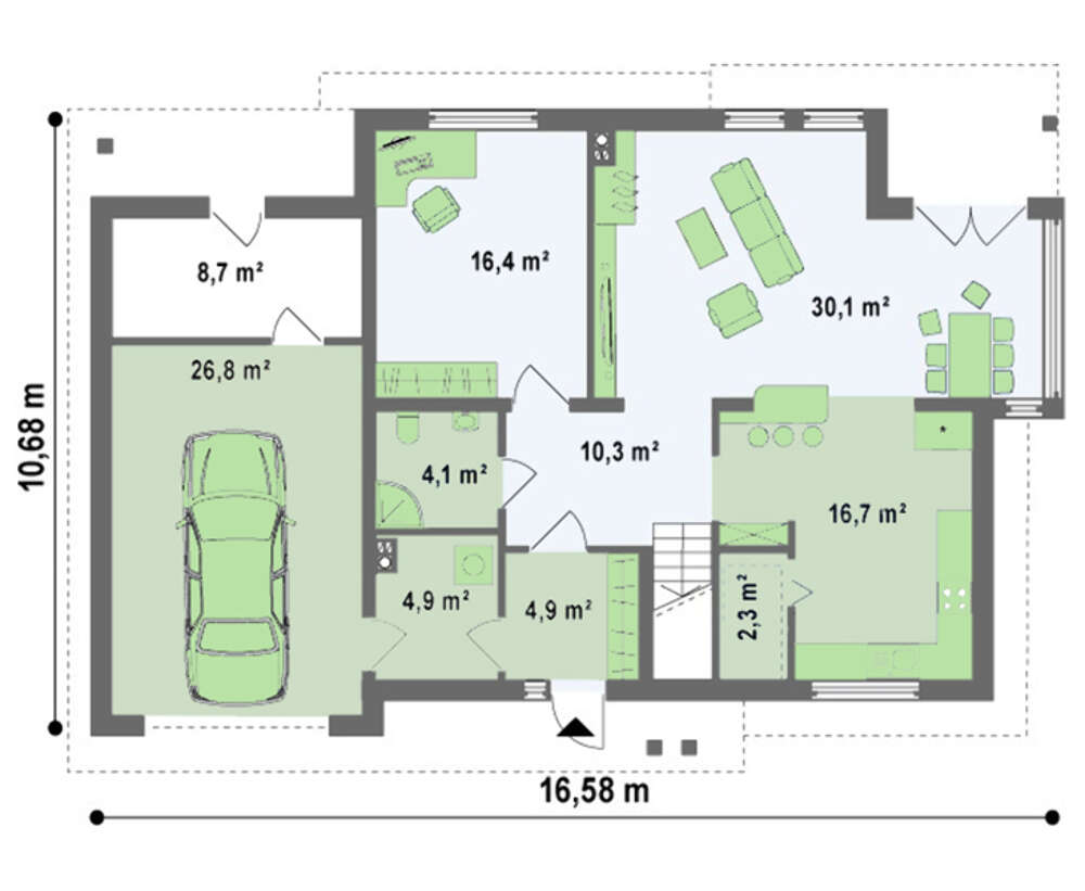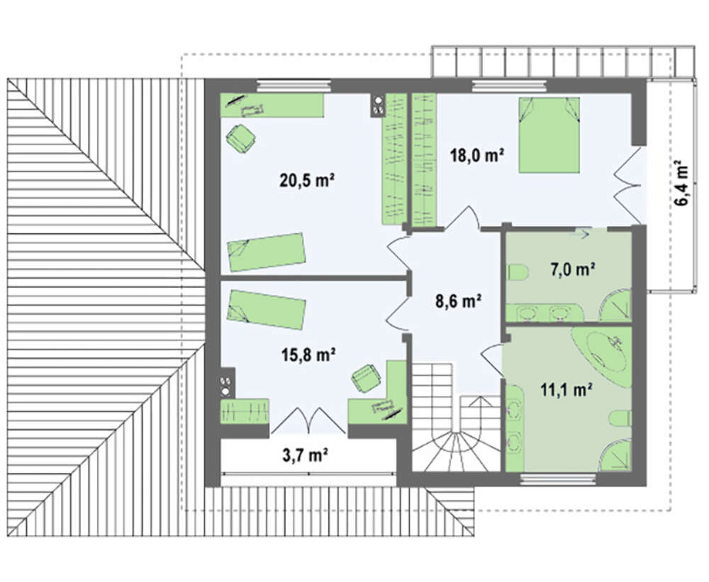 • 4M608a Двухэтажный коттедж с четырёхскатной кровлей