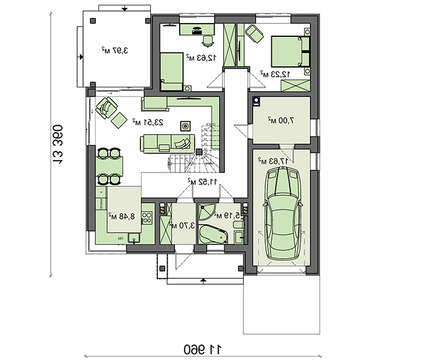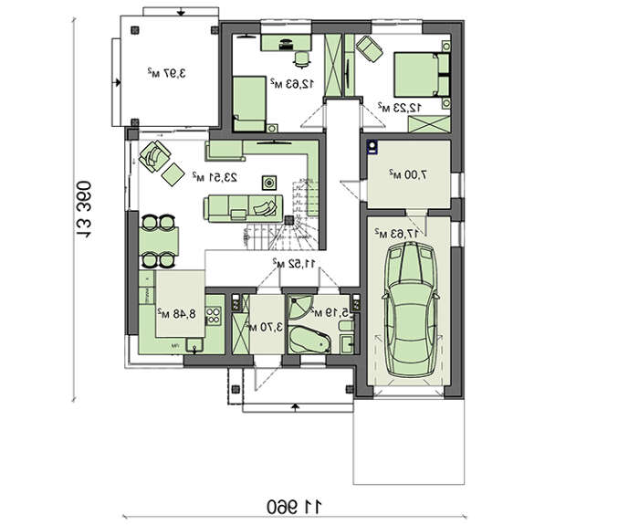 Проект содержит три раздела – АрхитектурныйКонструктивный и Инженерный: водоснабжение, отопление, вентиляция, канализация, электроснабжение (приобретается за дополнительную плату) + Пояснительная записка.