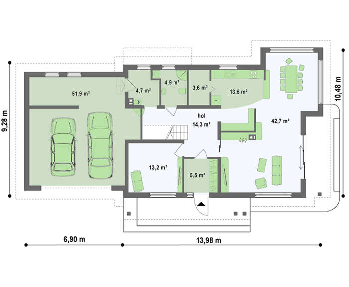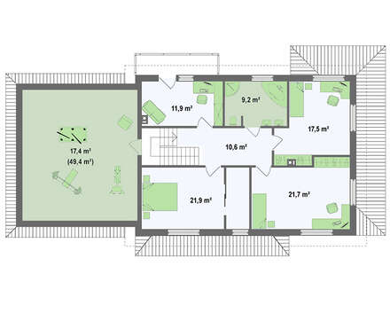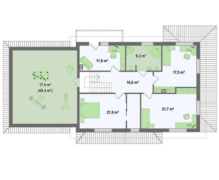 • 4M616 Двухэтажный загородный особняк с гаражом и многоскатной кровлей