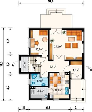 Проект содержит три раздела – АрхитектурныйКонструктивный и Инженерный: водоснабжение, отопление, вентиляция, канализация, электроснабжение (приобретается за дополнительную плату) + Пояснительная записка.