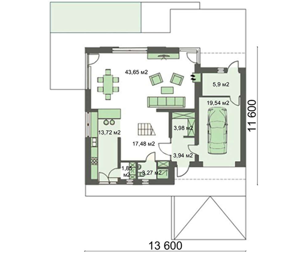 Проект содержит три раздела – Архитектурный, Конструктивный и Инженерный: водоснабжение, отопление, вентиляция, канализация, электроснабжение (приобретается за дополнительную плату) + Пояснительная записка.