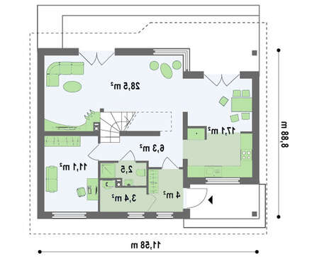 | Минимальный размер участка(длина): | 19.00 м |