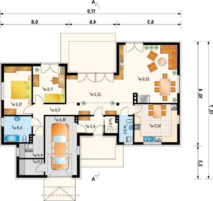 Проект содержит три раздела – Архитектурный, Конструктивный и Инженерный: водоснабжение, отопление, вентиляция, канализация, электроснабжение (приобретается за дополнительную плату) + Пояснительная записка.