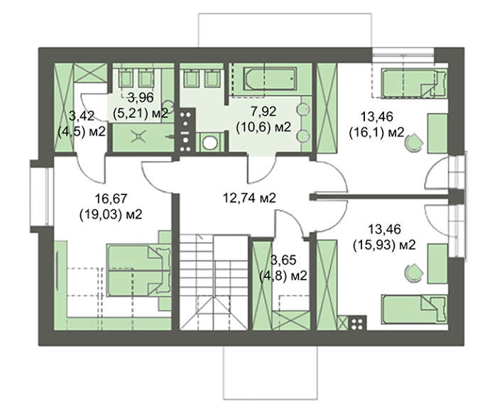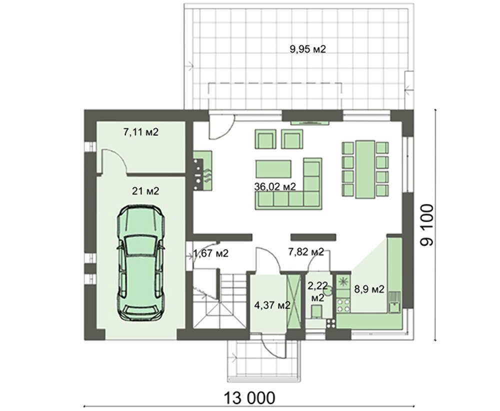 Проект содержит три раздела – Архитектурный, Конструктивный и Инженерный: водоснабжение, отопление, вентиляция, канализация, электроснабжение (приобретается за дополнительную плату) + Пояснительная записка.