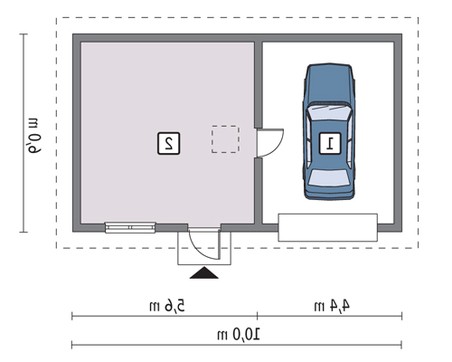 Гараж на 1 автомобиль с четырехскатной крышей 4M6057b