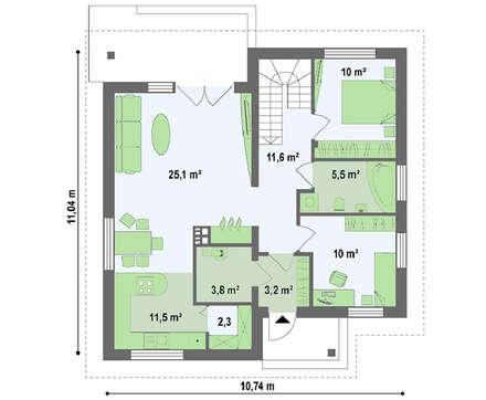 Проект содержит три раздела – Архитектурный, Конструктивный и Инженерный: водоснабжение, отопление, вентиляция, канализация, электроснабжение (приобретается за дополнительную плату) + Пояснительная записка.