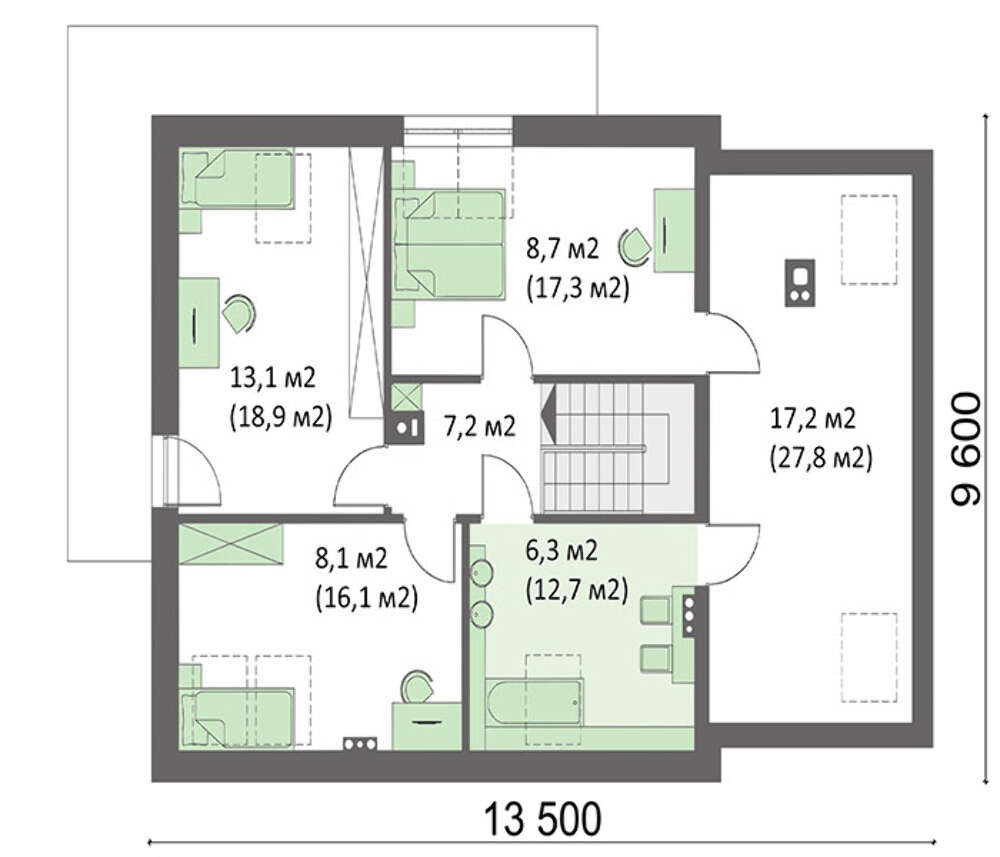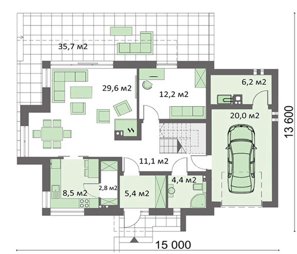 Проект содержит три раздела – АрхитектурныйКонструктивный и Инженерный: водоснабжение, отопление, вентиляция, канализация, электроснабжение (приобретается за дополнительную плату) + Пояснительная записка.
