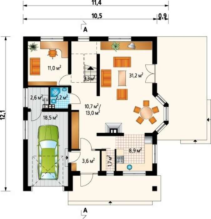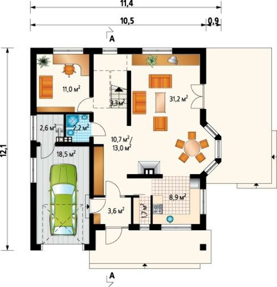 Проект содержит три раздела – АрхитектурныйКонструктивный и Инженерный: водоснабжение, отопление, вентиляция, канализация, электроснабжение (приобретается за дополнительную плату) + Пояснительная записка.