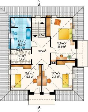 • 4M3039 Интересный проект двухэтажного коттеджа с балконами и скатной крышей
