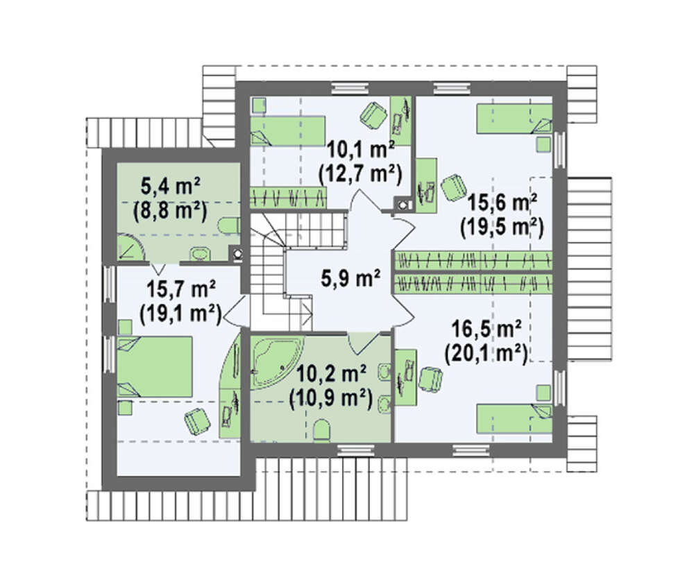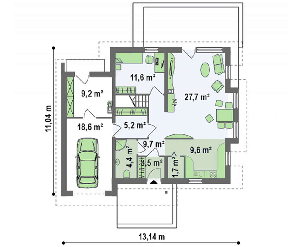 Проект содержит три раздела – АрхитектурныйКонструктивный и Инженерный: водоснабжение, отопление, вентиляция, канализация, электроснабжение (приобретается за дополнительную плату) + Пояснительная записка.