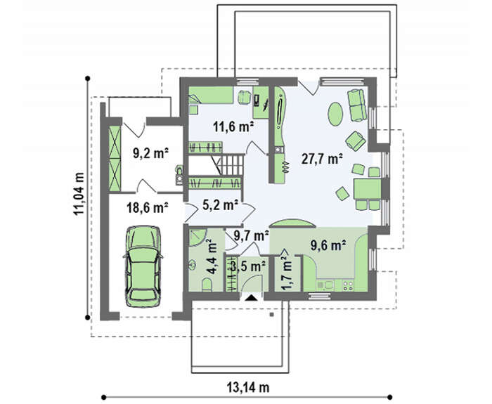 Интересный проект мансардного дома с фронтальным гаражом 4M049