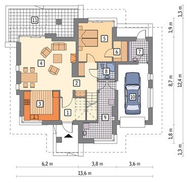 Проект содержит три раздела – Архитектурный, Конструктивный и Инженерный: водоснабжение, отопление, вентиляция, канализация, электроснабжение (приобретается за дополнительную плату) + Пояснительная записка.