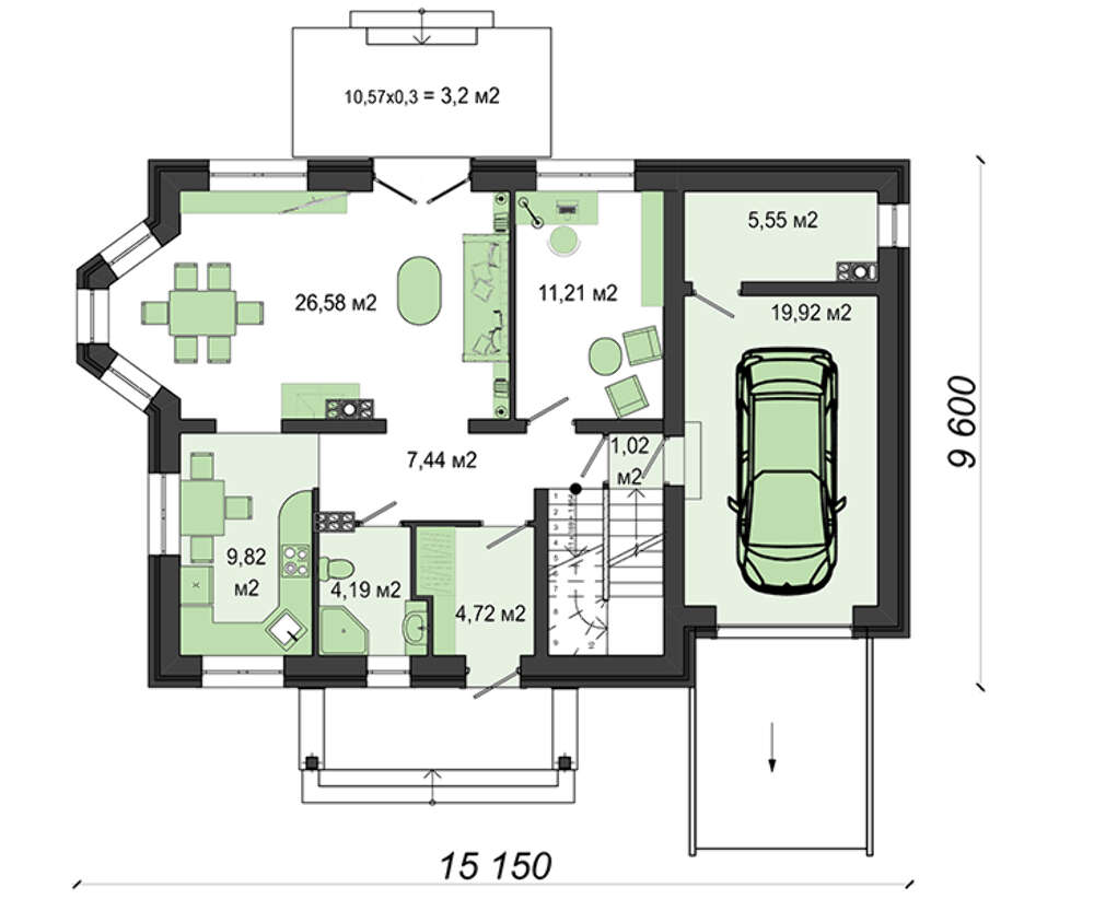 Высота дома:8.55 м