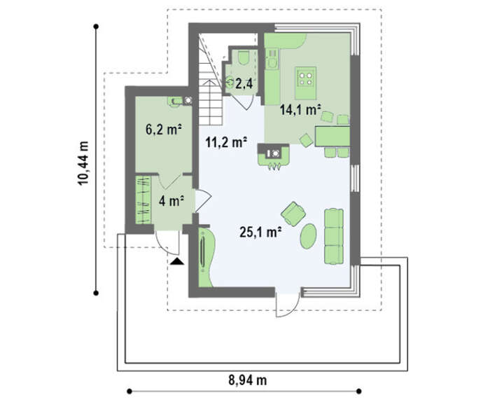 Благодаря тщательной проработке проекта, дом полностью соответствует запросам всех членов небольшой семьи, состоящей из четырех человек. Кроме того, он экономичен в строительстве и позволяет сократить расходы на обслуживание уже готового здания.