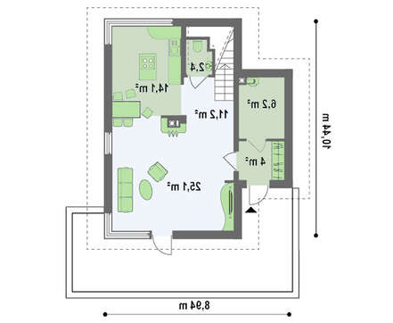 Благодаря тщательной проработке проекта, дом полностью соответствует запросам всех членов небольшой семьи, состоящей из четырех человек. Кроме того, он экономичен в строительстве и позволяет сократить расходы на обслуживание уже готового здания.