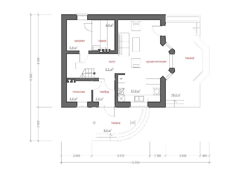 • 4M825 Компактный дачный домик с сауной