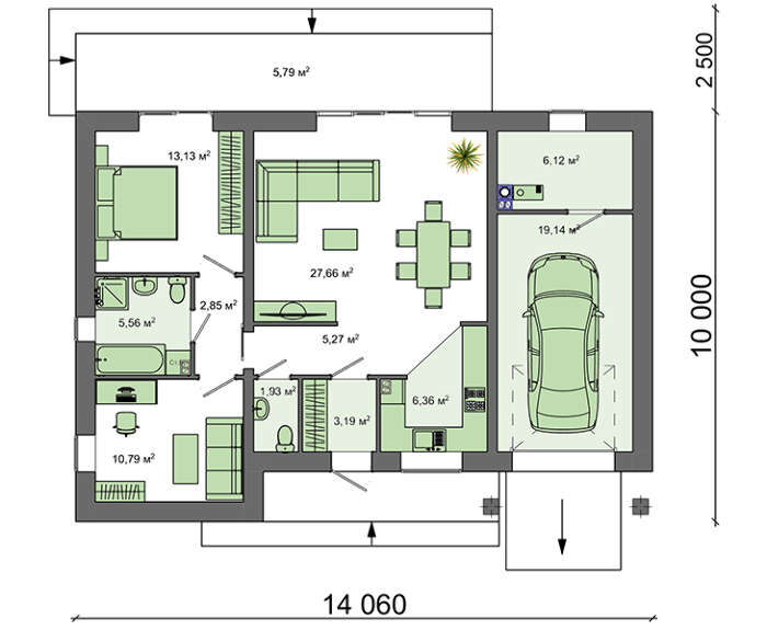Проект содержит три раздела – Архитектурный, Конструктивный и Инженерный: водоснабжение, отопление, вентиляция, канализация, электроснабжение (приобретается за дополнительную плату) + Пояснительная записка.