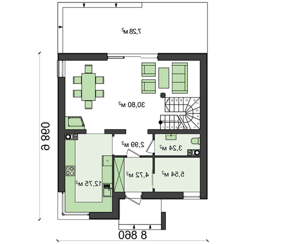 • 4M024 Компактный коттедж с оригинальным фасадом