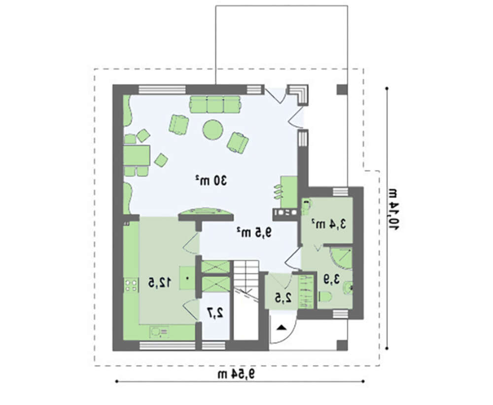 Проект содержит три раздела – Архитектурный, Конструктивный и Инженерный: водоснабжение, отопление, вентиляция, канализация, электроснабжение (приобретается за дополнительную плату) + Пояснительная записка.