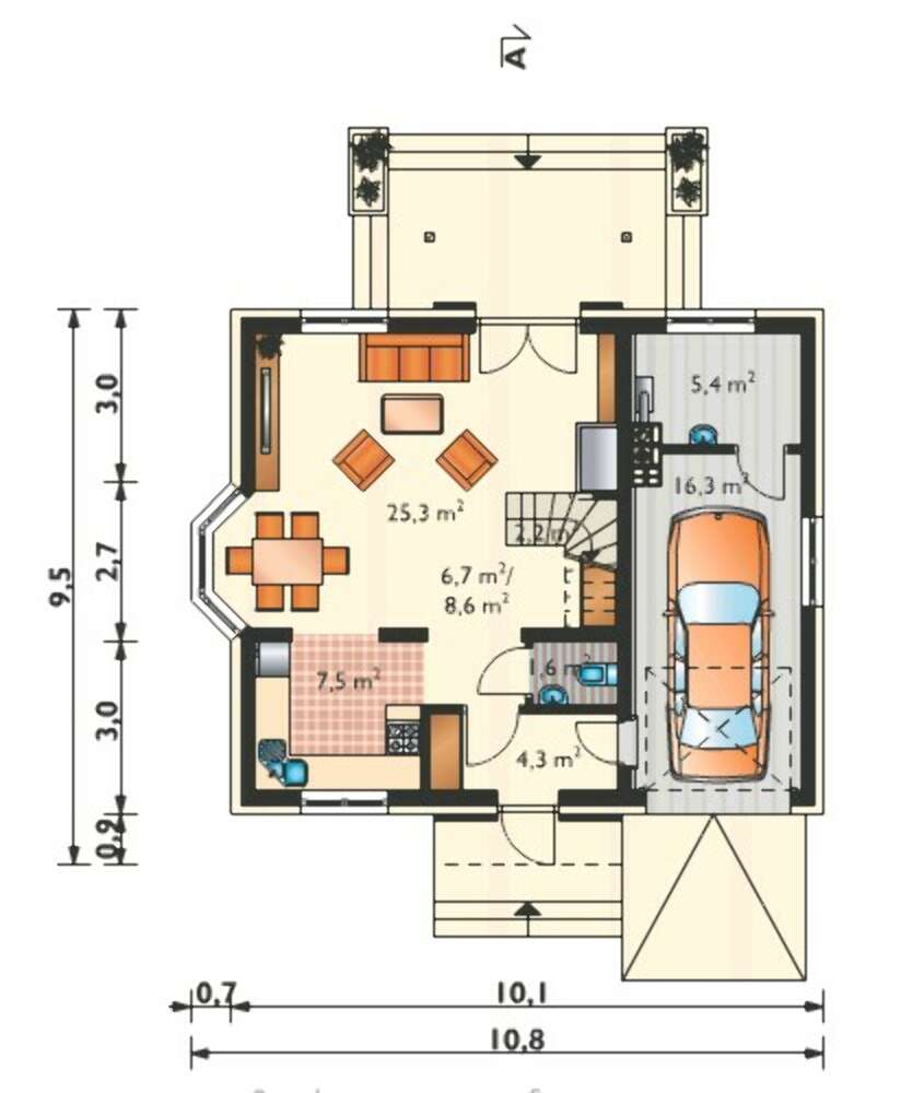 Среди особенностей планировки хочется отметить встроенный гараж с автомастерской, позволяющий выполнять все ремонтные работы в тепле и комфорте.