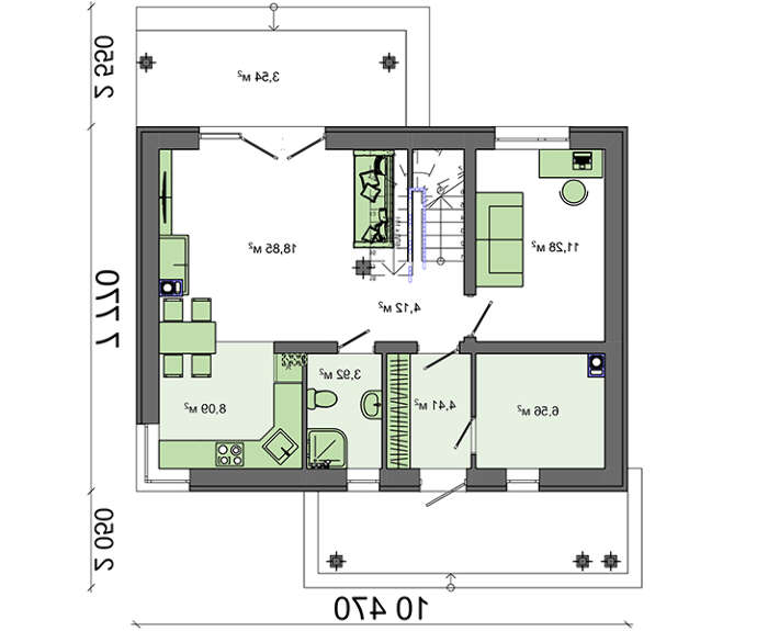 Проект содержит три раздела – Архитектурный, Конструктивный и Инженерный: водоснабжение, отопление, вентиляция, канализация, электроснабжение (приобретается за дополнительную плату) + Пояснительная записка.
